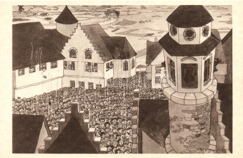 1933 Chicago World's Fair art postcard, A glorious Sunday, Hearing the Carillon; Messrs Wellens & Godenne s: Jean Dratz