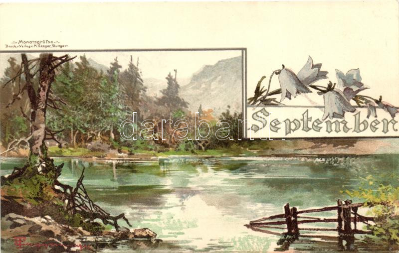 August; landscape, M. Seeger's Monatsgrüsse, litho s: T. Guggenberger