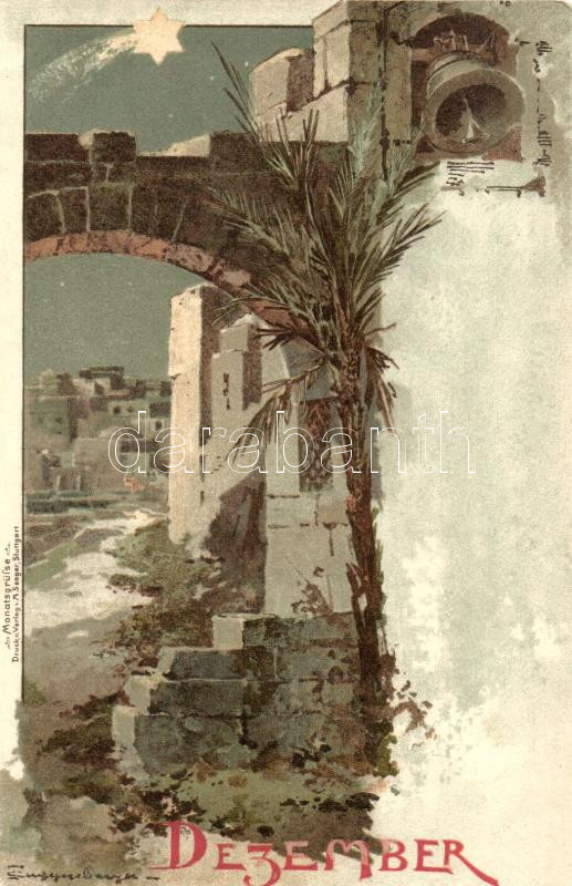 Dezember, December; landscape, M. Seeger's Monatsgrüsse, litho s:...