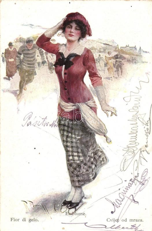 'Eisblume', ice skating Lady, M. Munk No. 1114, artist signed