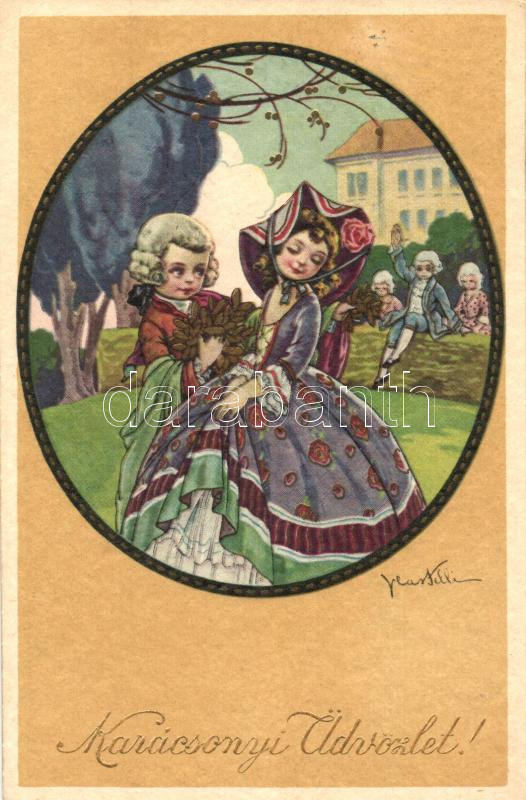 Italian art postcard, Christmas, Baroque children couple, Degami 1023. s: V. Castelli