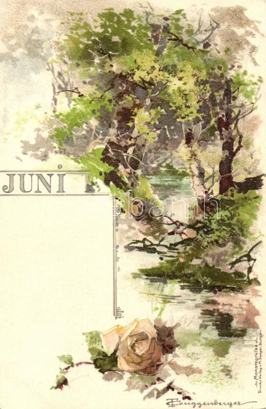 Juni, June; landscape, M. Seeger's Monatsgrüsse, litho s: T. Gugg...