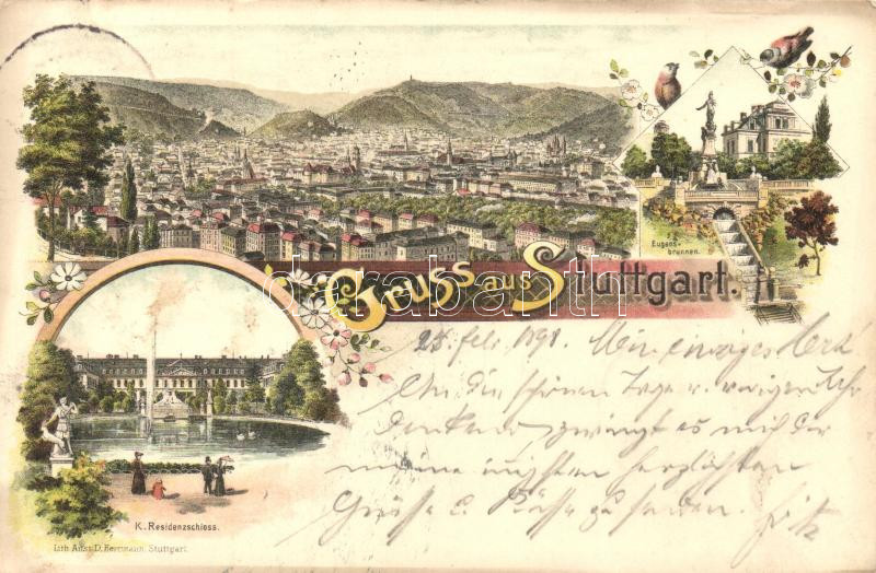 1898 Stuttgart, Eugens-Brunnen, K. Residenzschloss / fountain, castle, D. Herrmann's floral, litho