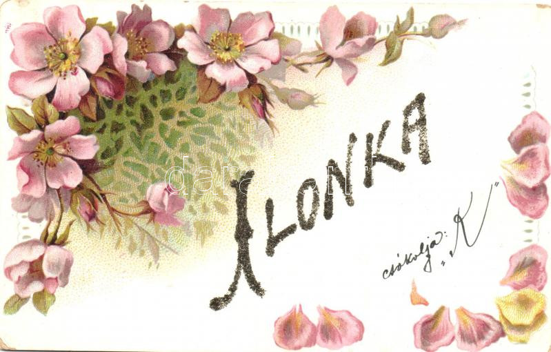 Ilonka, Name Day, greeting card, floral, litho (fa)