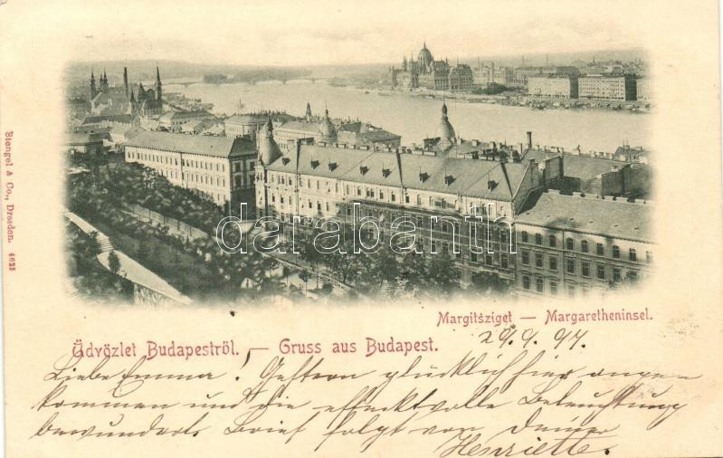 1897 (Vorläufer!) Budapest I. Víziváros, a távolban a Parlament és a Margitsziget