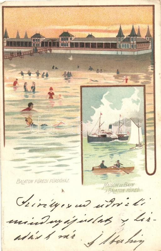 1899 Balatonfüred, Fürdőház; Bruchsteiner és fia, litho (EK)