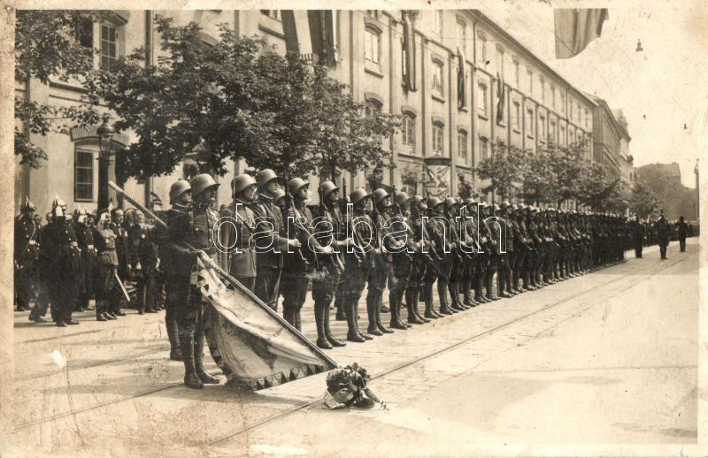 Budapest (?) Katonai ünnepség, zászló, csendőrök, Schäffer udv. fényk....