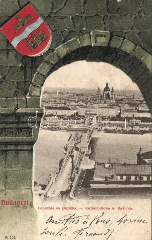 Budapest, Lánchíd, Bazilika, címer litho (EB)