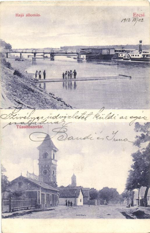 Ercsi, Hajóállomás, Tűzoltószertár, kiadja Déri János és fia
