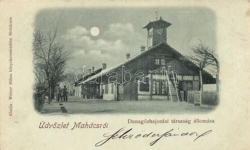 Mohács, Duna gőzhajózási társaság hajóállomása; kiadja Weiser Miksa könyvkereskedő