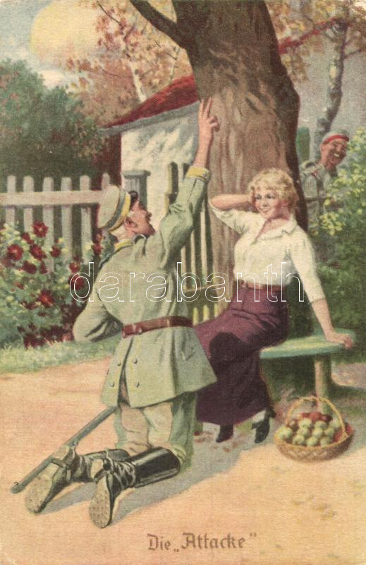Die Attacke / WWI German military humour, Künstler Postkartenreihe &qu...