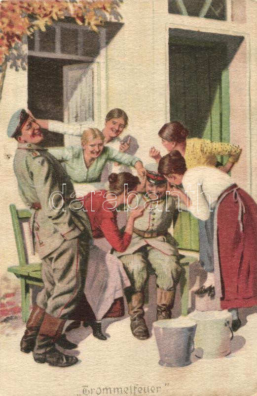Trommelfeuer / WWI German military humour, Künstler Postkartenreihe &q...