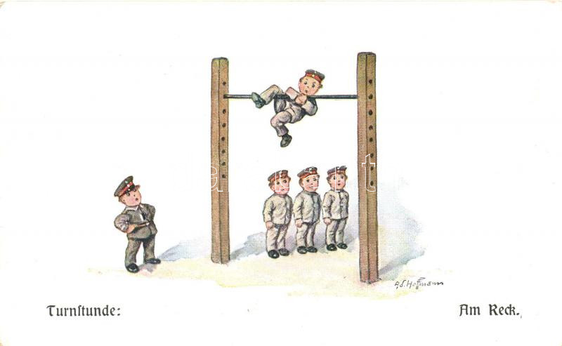 Turnstunde, Am Reck / WWI K.u.K. military humour, children, WSSB No. 4985. s: Hoffmann