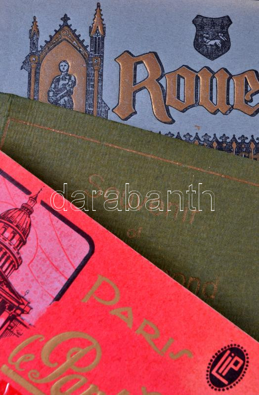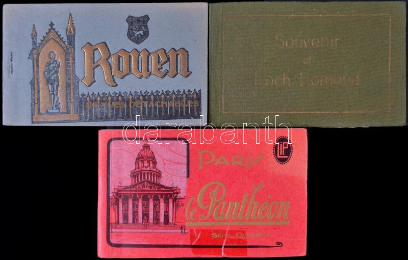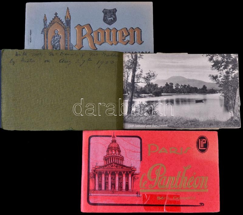3 db régi képeslap füzet: Rouen - 23 lapból álló képeslap füzet; Loch Lomond - 12 lapból álló képeslap füzet; Párizs, Panthéon - 48 lapból álló képeslap füzet / 3 old postcard booklets: Rouen, Loch Lomond, Paris