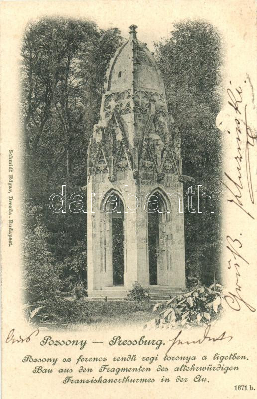 https://www.darabanth.com/en/251-Online-auction/251.0/Postcards/Slovakia~400007/Pozsony-Pressburg-Bratislava-Ferences-rendi-regi-torony-kiadja-Edgar-Schmidt-old-tower-of-the~II1212547