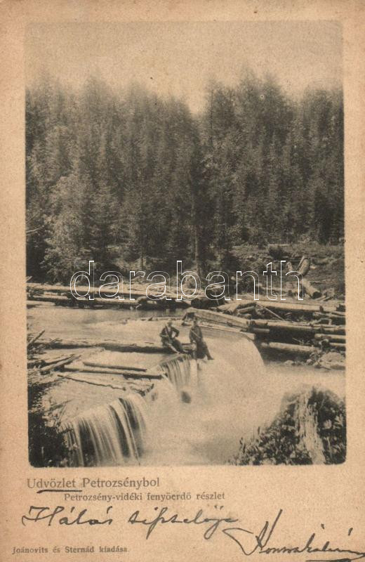 Petrozsény, Petrosani; faúsztatás, kiadja Joánovits és Sternád / wood drifting (ázott sarok / wet corner)