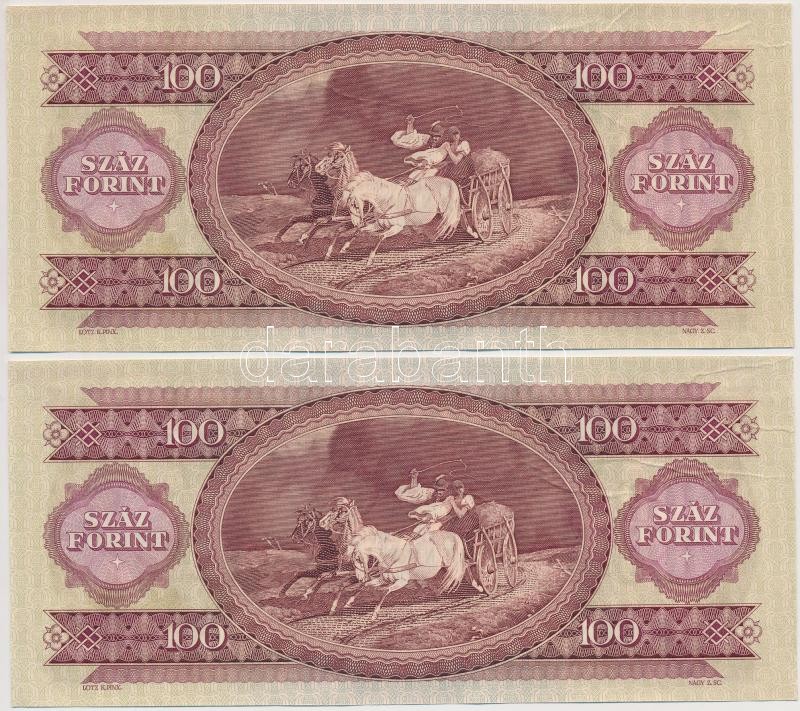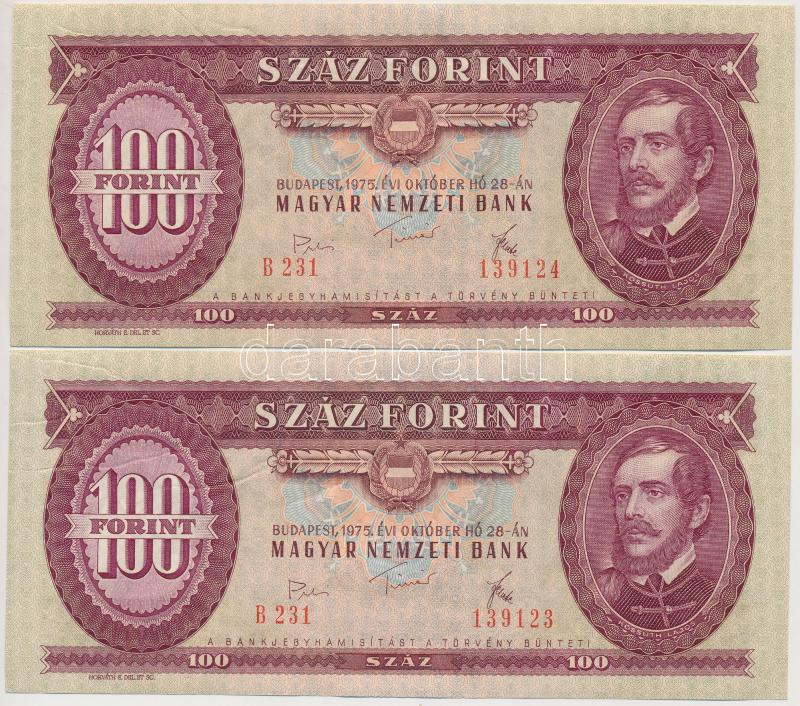 1975. 100Ft (2x) sorszámkövetők, mindkettő gyári papírráncokkal T:I