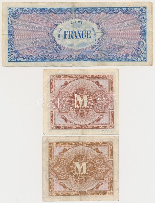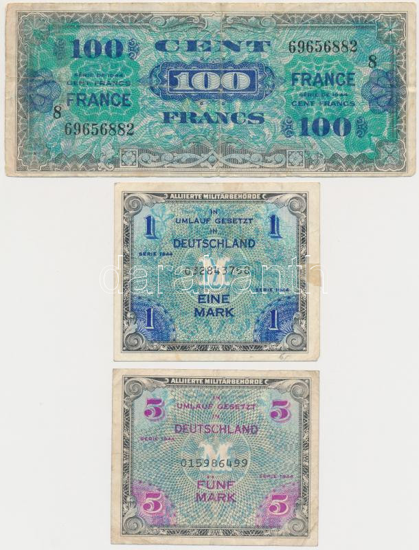 Description: Franciaország / Szövetséges katonai kiadás 1944. 100Fr + Német 3. Birodalom / Szövetséges megszállás 1944. 1M + 5M mindkettő kilencjegyű sorszámmal és "F" betűvel a sarokban T:III,III-