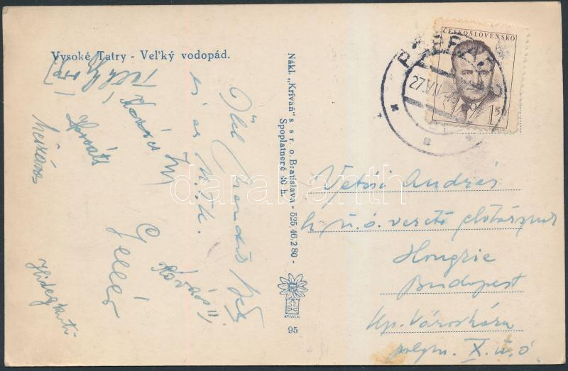 1944 Az MTK focicsapat játékosainak (Hidegkúti, Gellér,Kovács, Tóth és sokan mások) aláírása képeslapon