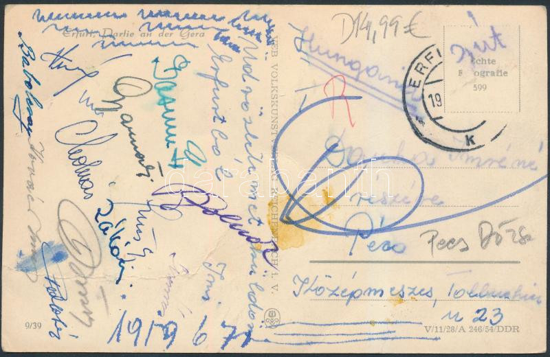1959 Pécsi Dózsa futballcsapat aláírása, többek között: Gyarmati, Ková...