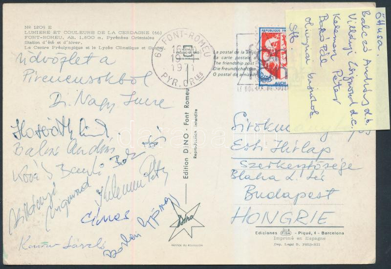1971 öttusázó bajnokok aláírása hazaküldött képeslapon(Balczó András, ...