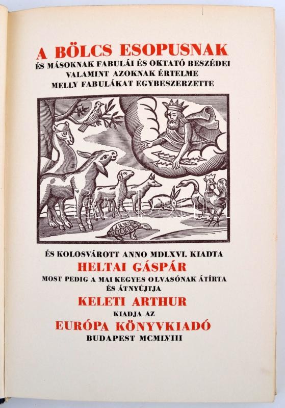 Description: A Bölcs Esopusnak és másoknak fabulái és oktató beszédei, valamint azoknak értelme melly fabulákat egybeszerzette és Kolosvárott anno MDLXVI, Kkiiadta Heltai Gáspár, most pedig a mai kegyes olvasónak átírta és átnyujtja Keleti Arthur.