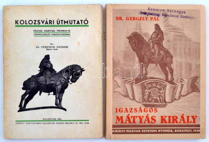 Description: Ferenczi Sándor dr.:Kolozsvári útmutató földtani, őslénytani, történelmi és természetrajzi vonatkozásokkal.Kolozsvár, 1941, "Erdély" Könyvnyomda. Kiadói papír kötésben + Gergely Pál dr.:Igazságos Mátyás király. Bp., 1940, Királyi Magyar Egyetemi Nyomda. Kiadói papír kötésben.