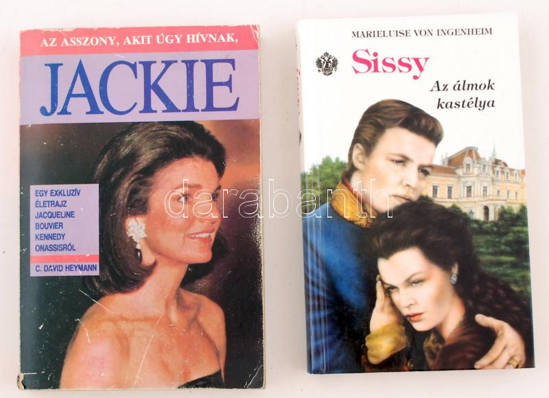 Ingenheim, Marieluise von: Sissy. Az álmok kastélya. Bp., 1992, Rakéta Kiadó. Kartonált papírkötésben,jó állapotban.; Heymann, C. David: Az asszony, akit úgy hívnak, Jackie. Debrecen, 1989. Papírkötésben, jó állapotban.