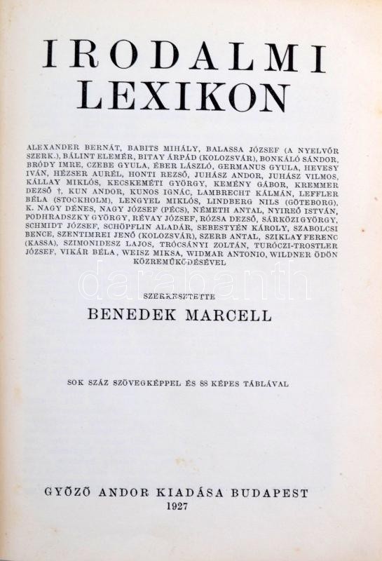 Irodalmi lexikon. Szerkeszti Benedek Marcell. Bp., 1927, Győző Andor k...