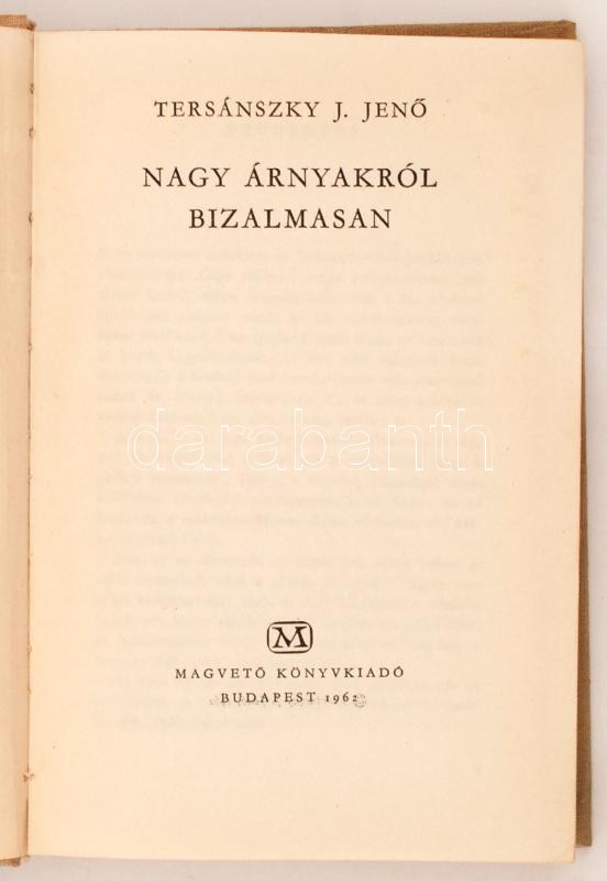 https://www.darabanth.com/en/252-Online-auction/252.0/Other-collectibles/Books-Other-rarities~800034/Tersanszky-J-Jeno-Nagy-arnyakrol-bizalmasan-Bp-1962-Magveto-302-p-Kiadoi-egeszvaszon~II1221920
