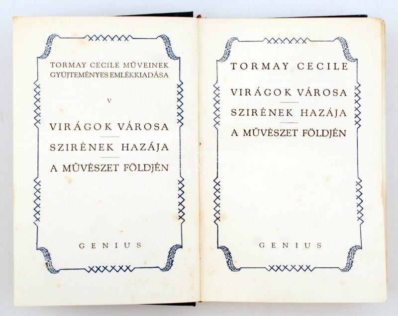 Tormay Cecile: Virágok városa. Szirének hazája. A művészet földjén. (T... https://www.darabanth.com/en/252-Online-auction/252.0/Other-collectibles/Books-Other-rarities~800034/Tormay-Cecile-Viragok-varosa-Szirenek-hazaja-A-muveszet-foldjen-Tormay-Cecile-muvei-5~II1220003