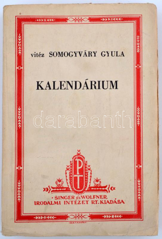 vitéz Somogyváry Gyula: Kalendárium. Bp., 1943, Singer és Wolfner. 222... https://www.darabanth.com/en/252-Online-auction/252.0/Other-collectibles/Books-Other-rarities~800034/vitez-Somogyvary-Gyula-Kalendarium-Bp-1943-Singer-es-Wolfner-222-p-Fuzve-kiadoi-papir~II1216957