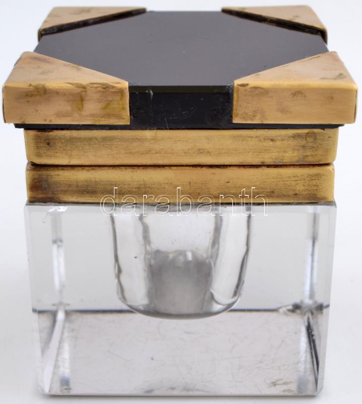 Art deco tintatartó, fém-üveg, apró hibákkal, 6×6×6 cm