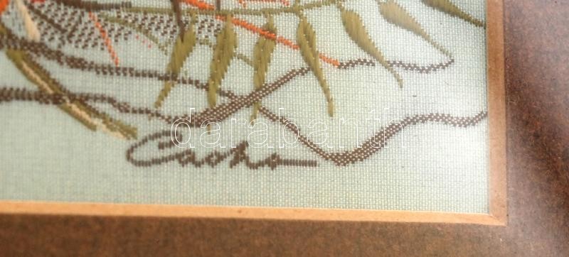 Cash angol finoman kidolgozott gobelin kép, paszpartuban, üvegezett fa...