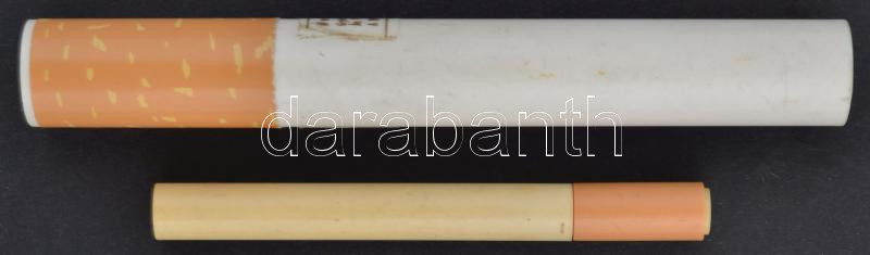 Cigarettaformájú golyóstoll, 8cm, és szájízesítő drazsé doboz, 12cm