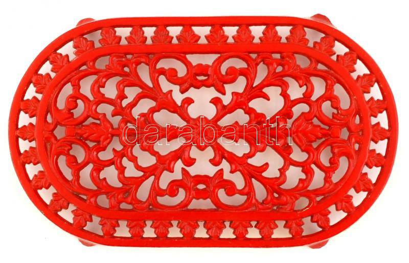 Gazdagon díszített, festett öntöttvas lábas alátét, 25,5×15 cm