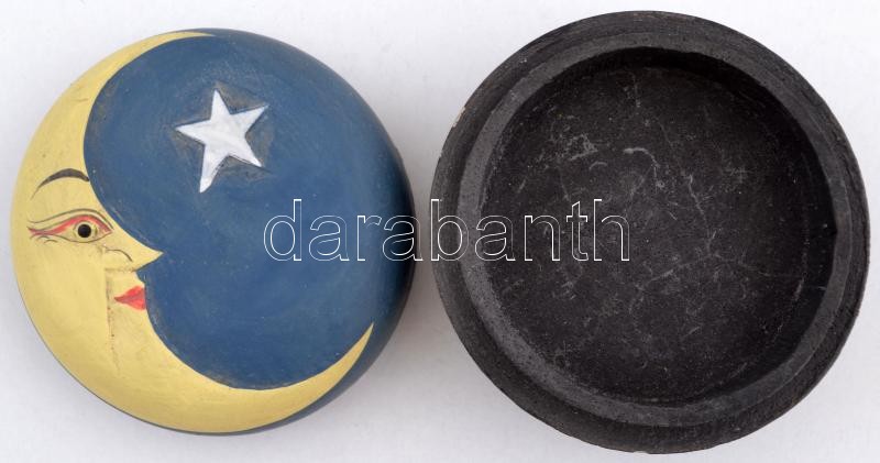 Holddal és csillaggal díszített dekoratív tartó, fa, d: 8,5 cm
