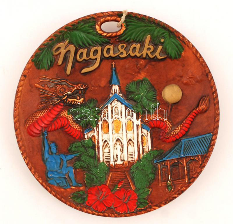 "Nagasaki" feliratú fali dísztál, rajta az óurai templommal, műgyanta(...