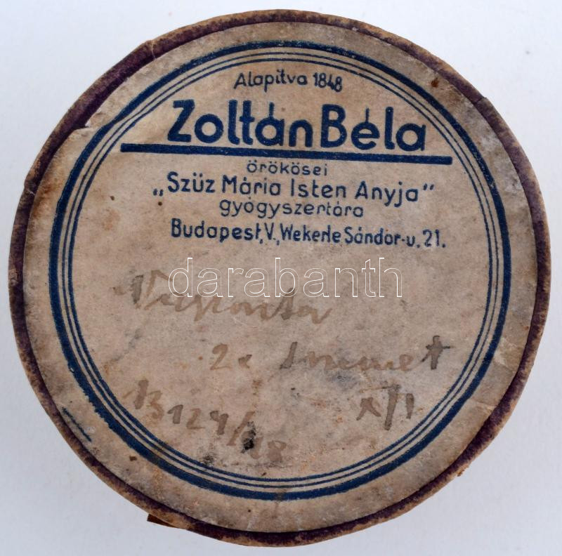https://www.darabanth.com/en/252-Online-auction/252.0/Other-collectibles/Flea-Market~800020/Zoltan-Bela-orokosei-Szuz-Maria-Isten-Anyja-gyogyszertara-papirdoboz-5x2cm~II1221006