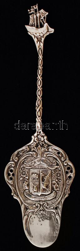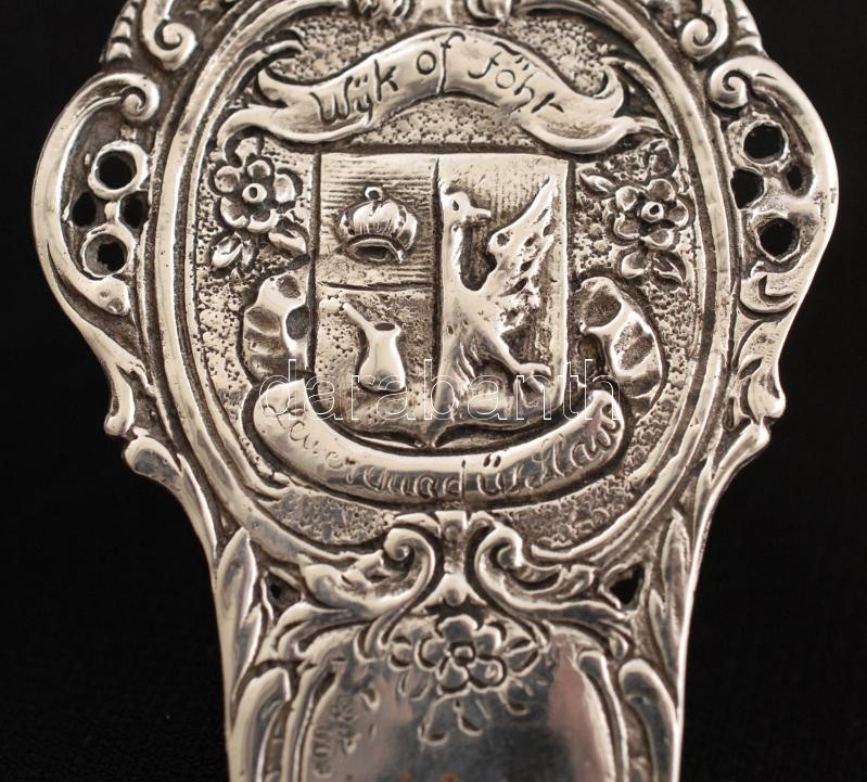 Ezüst, címeres süteményes lapát, Ag., 24,3gr.,jelzett, 16cm/ Silver, emblazoned cookie scoop, Ag. 24,3gr., marked, 16cm