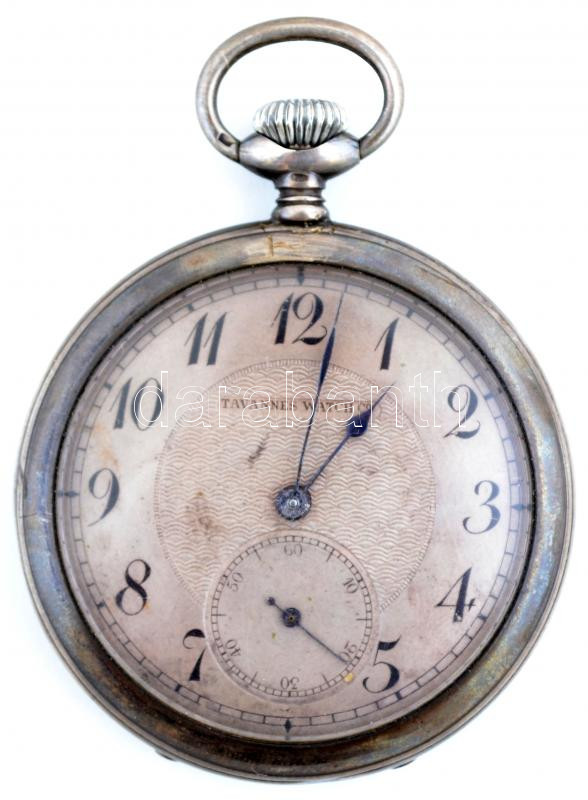Tavannes ezüst (Ag.) zsebóra, díszes hátlappal, saját tokjában, működik, bruttó 64 g
