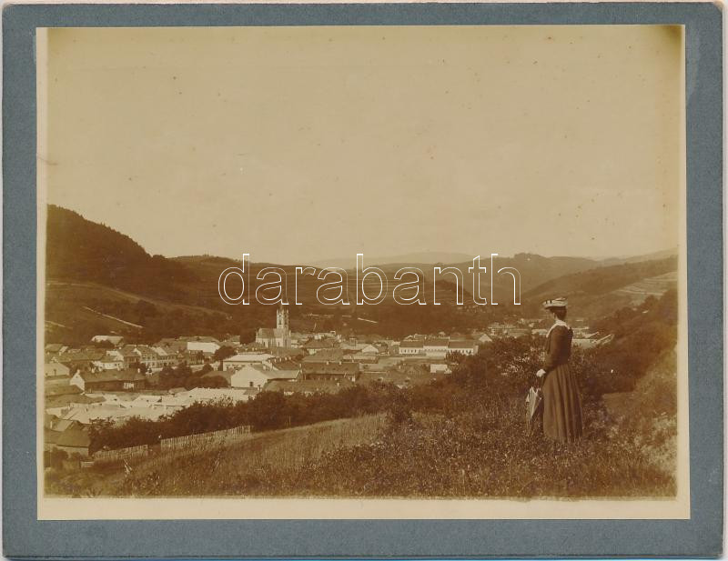 cca 1900 Dobsina, Szlovákia, kilátás a dombtetőről, keményhátú fotó, 1...