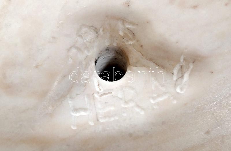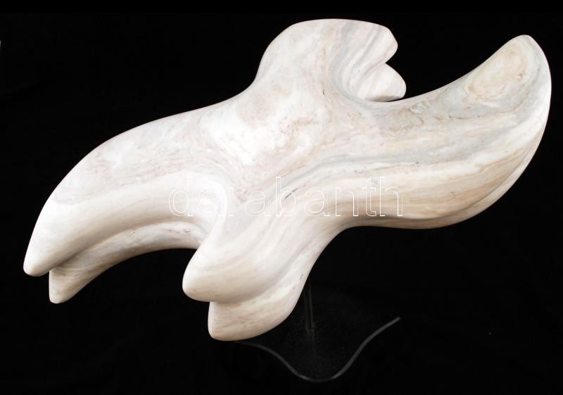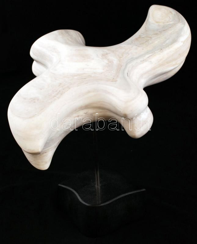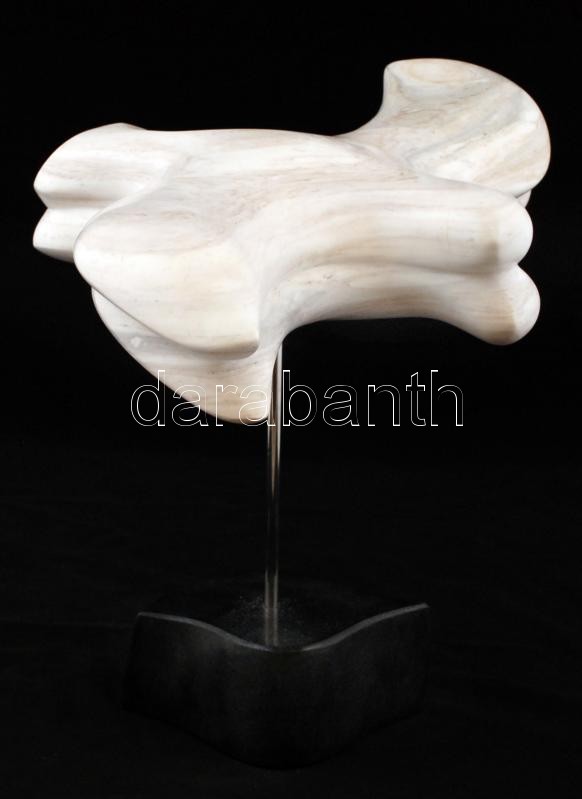 Héra József (1976-): Madárpár. Fehér márvány, gránit talapzaton, jelzett, 43×36 cm, m:38 cm