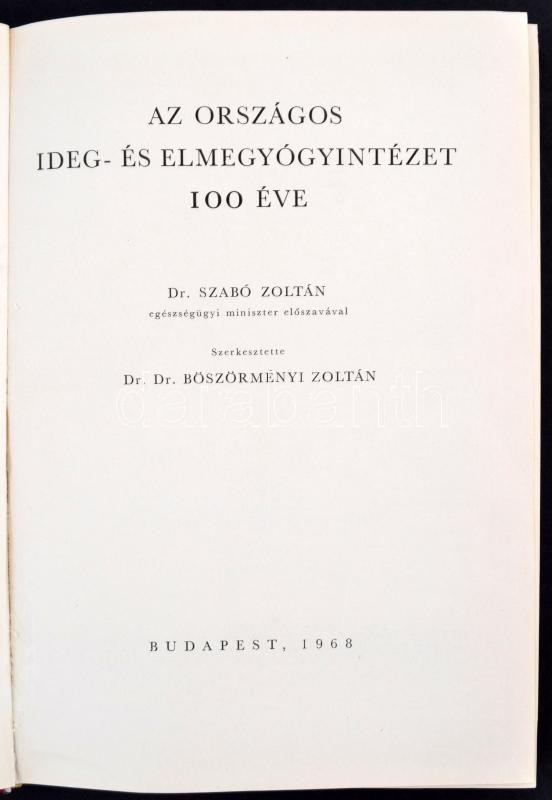 Dr.Dr. Böszörményi Zoltán(szerk.): Az Országos Ideg- és Elmegyógyintézet 100 éve. Bp., 1968. Kiadói műbőr kötés, jó állapotban.