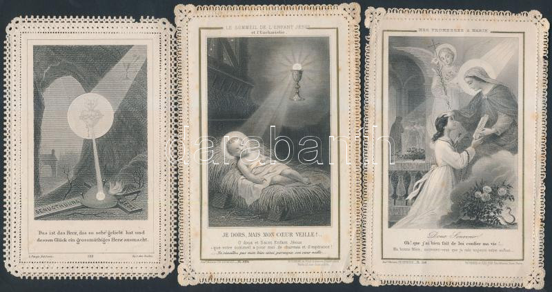 cca 1920-30 Csipkeszélű szentképek, különböző méretben és minőségben,3db, cca 12x8cm