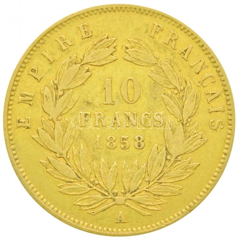 Franciaország / Második Császárság 1858A 10Fr Au "III. Napóleon&q... https://www.darabanth.com/en/253-Online-auction/253.0/Numismatics/Gold-coins~200010/Franciaorszag-Masodik-Csaszarsag-1858A-10Fr-Au-III-Napoleon-Parizs-32g0900-T2-3--~II1223432
