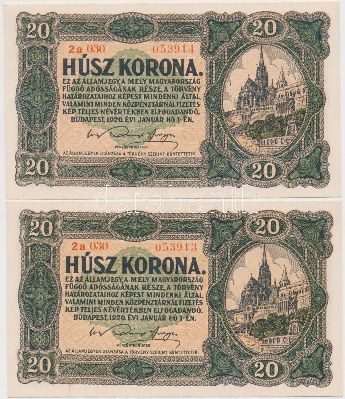 1920. 20K (2x) sorszámkövetők T:I,I-