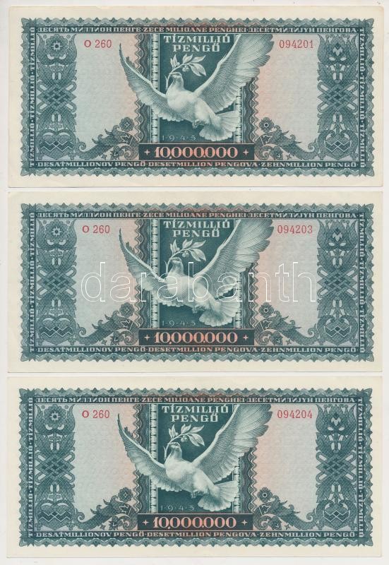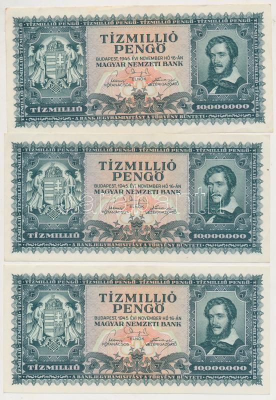 1945. 10.000.000P (3x) közte 2db sorszámkövető és 1db közeli sorszám T...