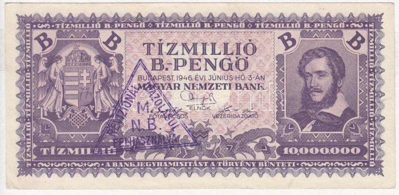 1946. 10.000.000BP hamis "Revíziónál igazolásul felhasználva M.N.B." felülbélyegzéssel (fake overprint) T:III