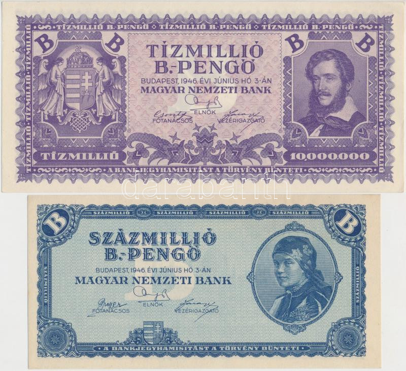 https://www.darabanth.com/en/253-Online-auction/253.0/Numismatics/Hungarian-Banknotes~200007/1946-10000000BP-plus-100000000BP-TI-~II1223302